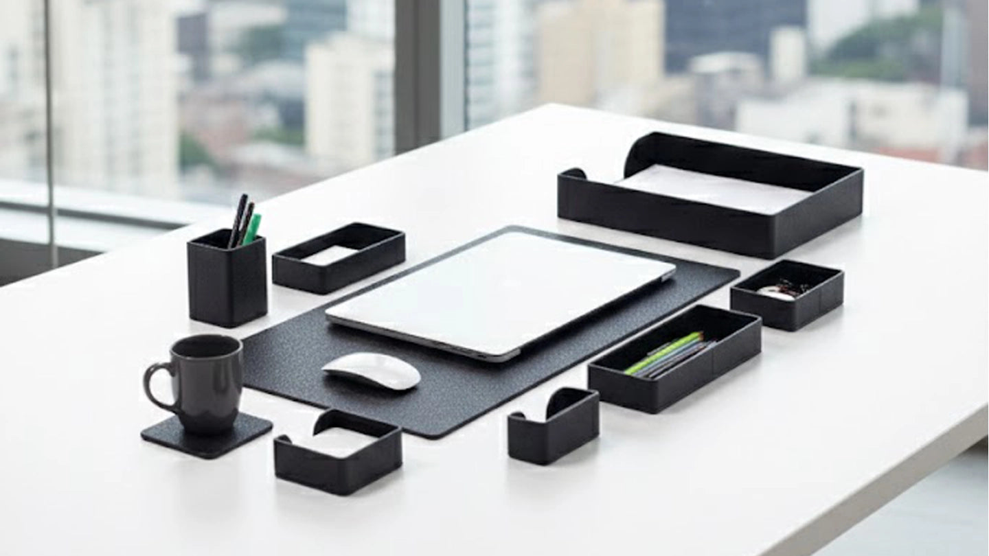Masa üstü isimlik setleri, ofisinizdeki tüm küçük aksesuarları bir araya getirir. Kalemlik, kartlık, notluk ve masa isimliği ile birlikte sunulan bu setler, hem modern hem de klasik tasarımların birleşimini yansıtır.